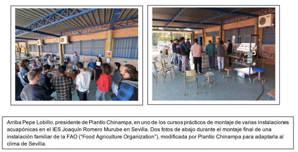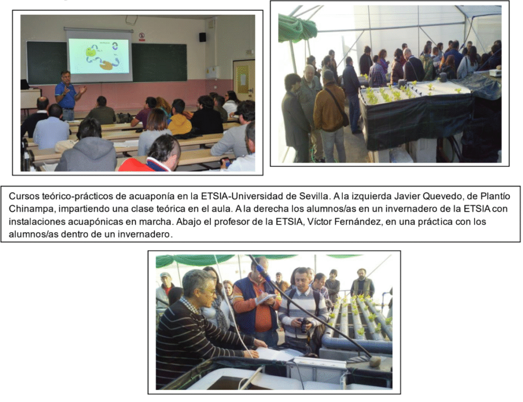 Al principio organizamos cursos con la universidad de Sevilla y el Aula del Mar de Málaga. Eran cursos y charlas didácticas que se desarrollaban principalmente en aulas o salones, con mayor carga teórica, algo de práctica y visitas a instalaciones acuapónicas en marcha con peces y plantas. Su tiempo de duración comprendía desde un viernes por la tarde hasta el siguiente domingo antes de la hora de comer.