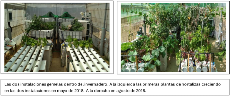 Las producciones anuales que se registraron fueron similares en ambas instalaciones, con un ligero aumento en la que se mantuvo todo el año en condiciones acuapónicas, alcanzando 177 Kg de hortalizas (de 22 tipos